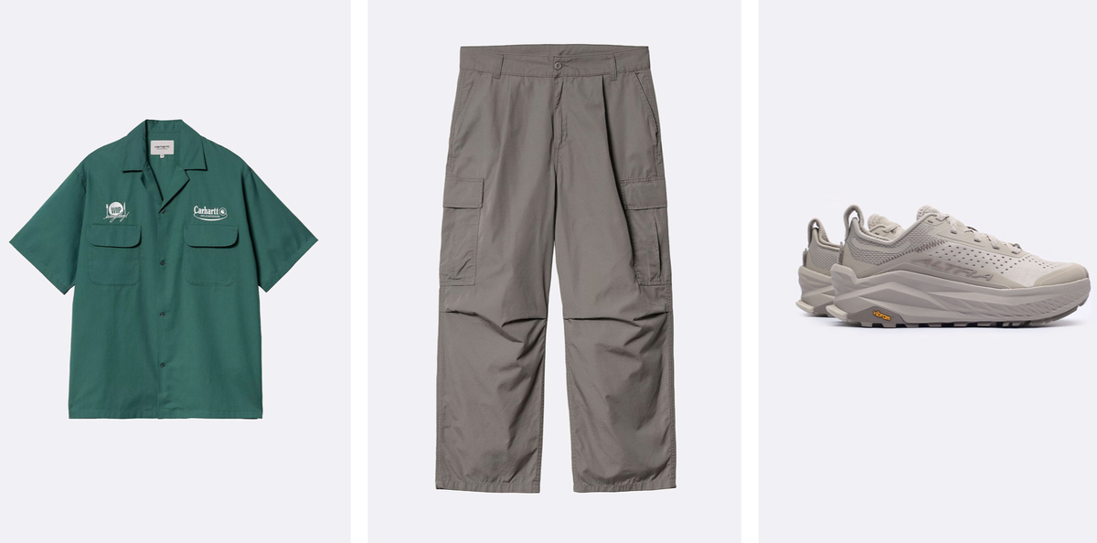 Мы обожаем боулинговые рубашки, поэтому не могли пройти эту от Carhartt WIP и застилизовали ее вместе c карго-штанами, а довершает образ бежевая пара Altra.